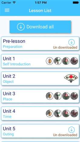 - Lesson List: Select Unit. Units are corresponding to Minna no Nihongo textbook.