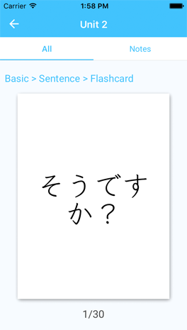 - The front side of the flashcard is in form of Japanese, the back side is in form of Vietnamese. Moreover, users can confirm by sound.