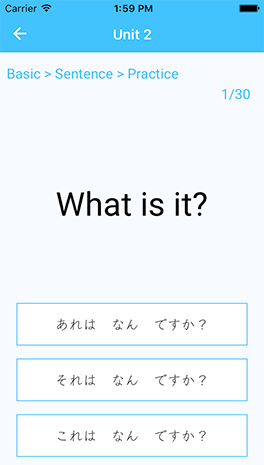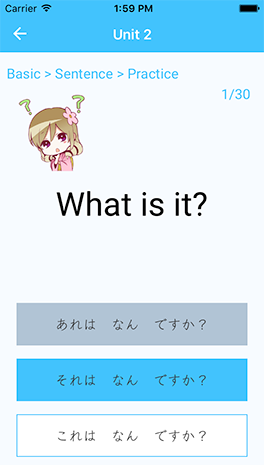 - 3. Listen to Japanese sound to practice answering in Japanese.