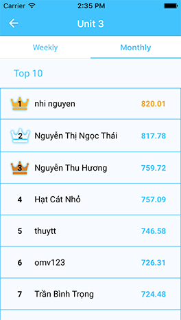 - 3. When finishing learning words and sentences of Basic level, users can practice quickly answering in Trial part.